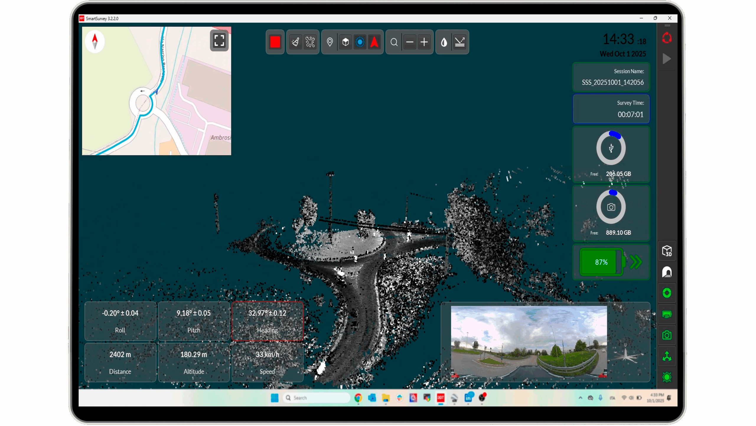 SmartSurvey offre semplicità e potenza agli operatori, mettendoli al centro di ogni rilievo. I pannelli di controllo dello stato dei sensori forniscono un feedback completo sullo stato delle risorse quali batteria e memoria, nonché INS, LiDAR e camera, guidando l’operatore in ogni fase della rilievo. La pianificazione della missione è semplificata dall’importazione di file di percorso KML e dalla rapida configurazione dei parametri di pre-acquisizione, mentre la qualità dei dati è garantita dalla visualizzazione della nuvola di punti in tempo reale e dalla verifica della sincronizzazione della fotocamera tramite anteprima a schermo intero. SmartSurvey: il cuore del controllo