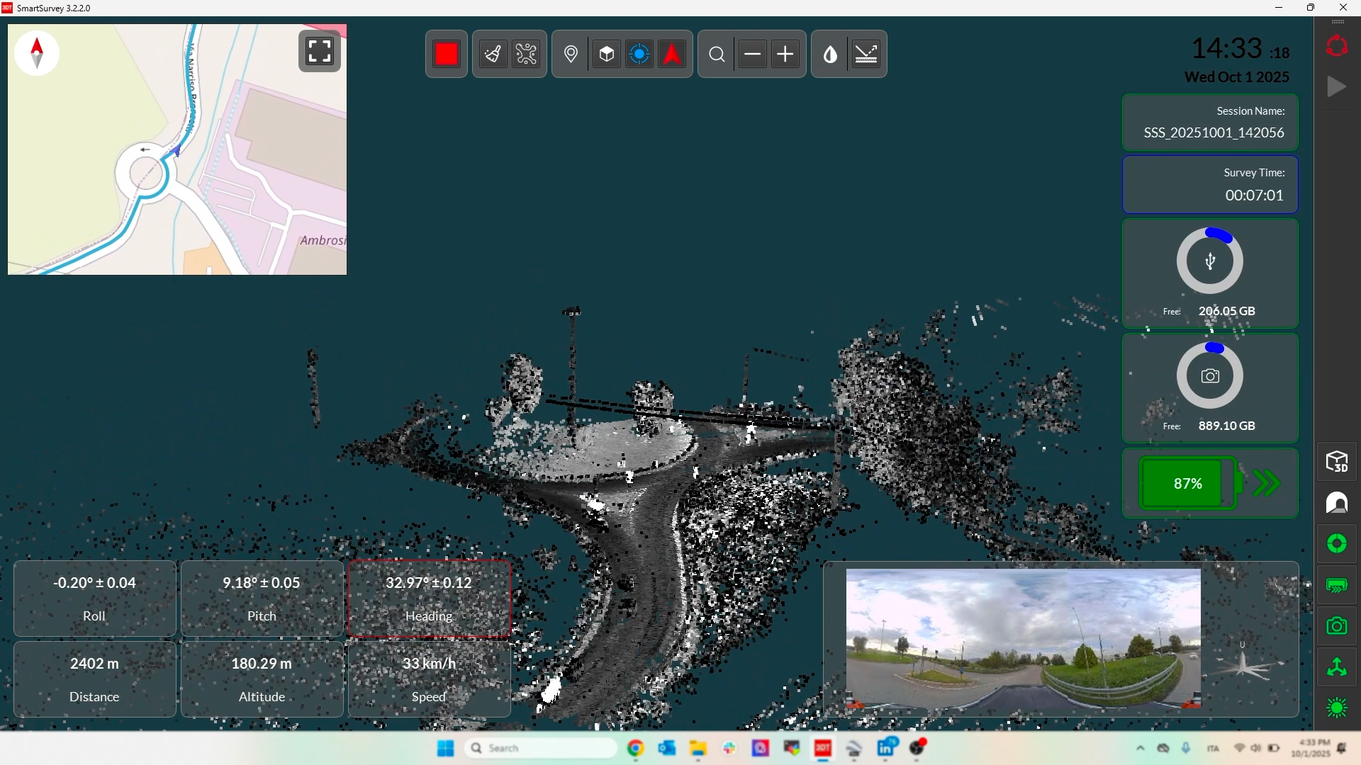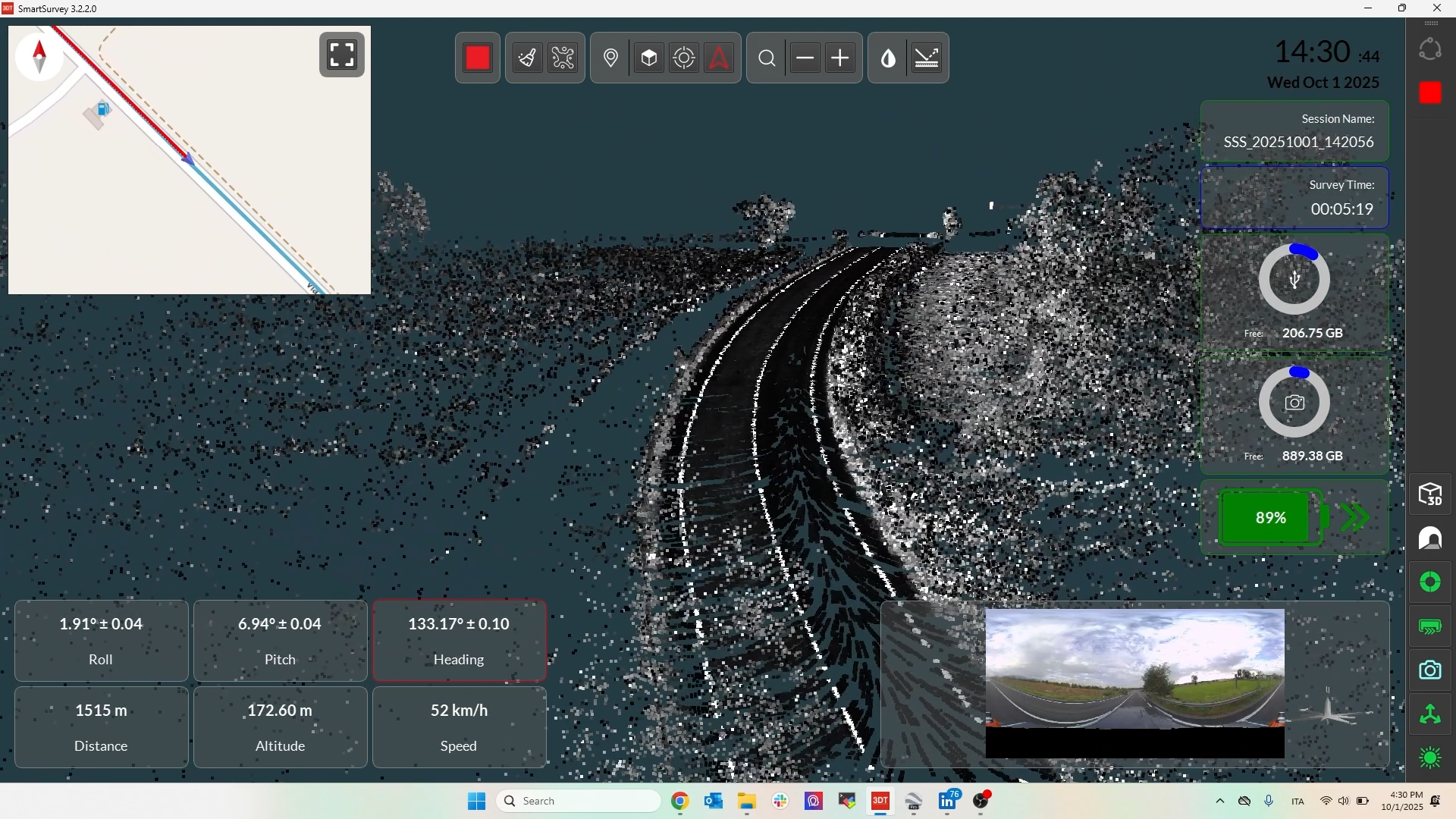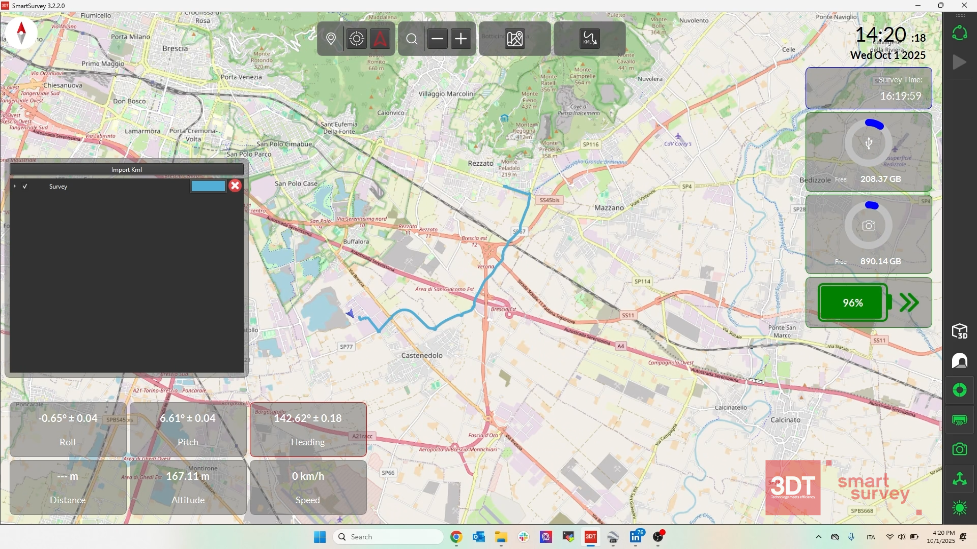 SmartSurvey offre semplicità e potenza agli operatori, mettendoli al centro di ogni rilievo. I pannelli di controllo dello stato dei sensori forniscono un feedback completo sullo stato delle risorse quali batteria e memoria, nonché INS, LiDAR e camera, guidando l’operatore in ogni fase della rilievo. La pianificazione della missione è semplificata dall’importazione di file di percorso KML e dalla rapida configurazione dei parametri di pre-acquisizione, mentre la qualità dei dati è garantita dalla visualizzazione della nuvola di punti in tempo reale e dalla verifica della sincronizzazione della fotocamera tramite anteprima a schermo intero. SmartSurvey: il cuore del controllo